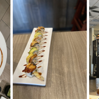 Shrimp tempura, cucumber, krab meat, cream cheese roll topped with krab meat, fresh water eel, tempura crunch.