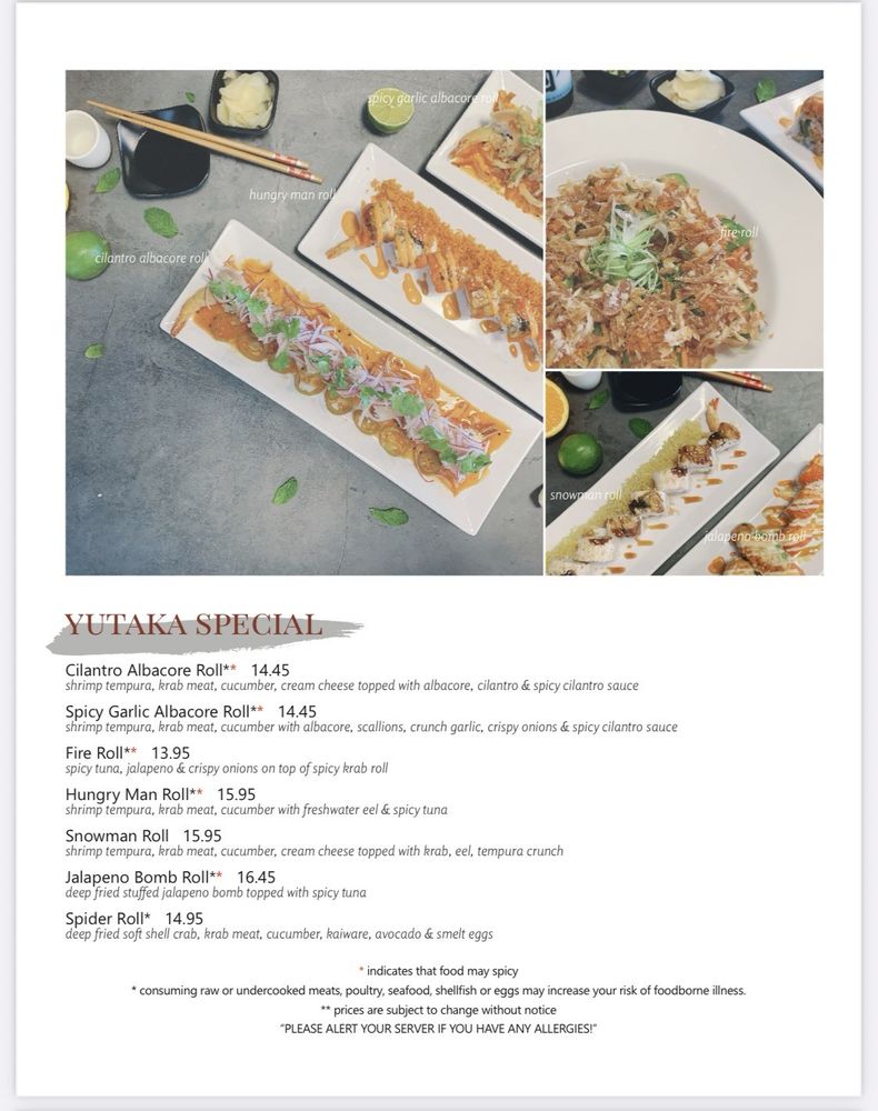 Yutaka Japanese Restaurant Menu (2025 Update)