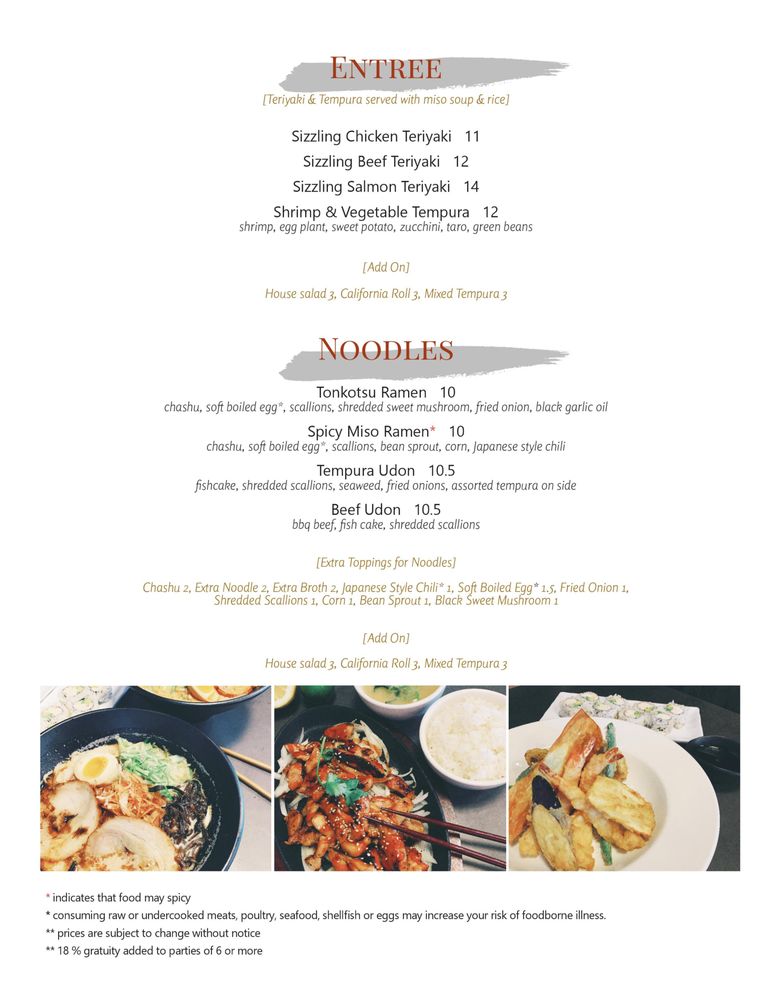 Pork broth, chashu, soft boiled egg, scallions, bean sprouts, corn, Japanese style chili.*Ramen noodles are cooked then ran under cold water to stop cooking process and prevent soggy noodles. Ramen noodles will arrive room temperature/cold.*